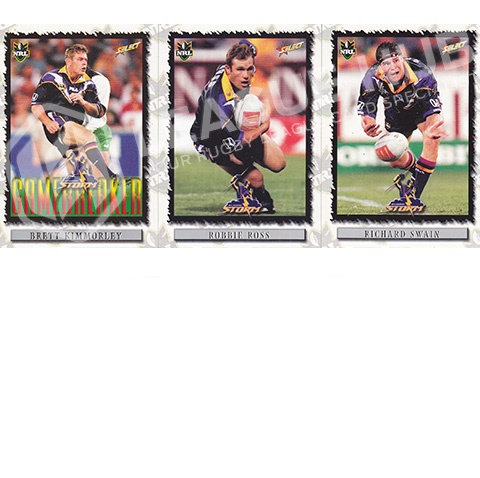Melbourne Storm 9 card common subset. All cards are in near mint condition. Includes the rare Brett Kimmoerley card #43.