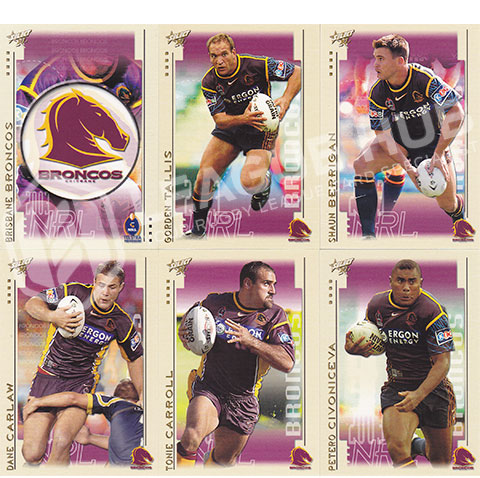 Brisbane Broncos 12 card common subset. All cards are in mint condition.