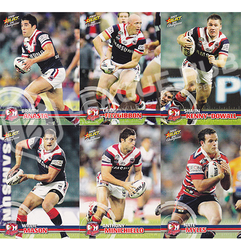 Sydney Roosters 12 card subset from the 2009 Select Champions release. All cards are in mint condition.